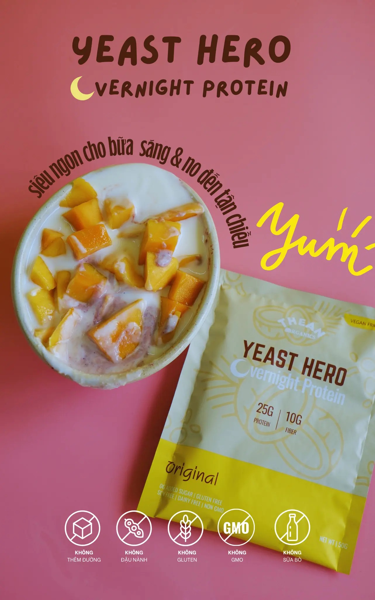 - 1 gói Yeast Hero Overnight Protein